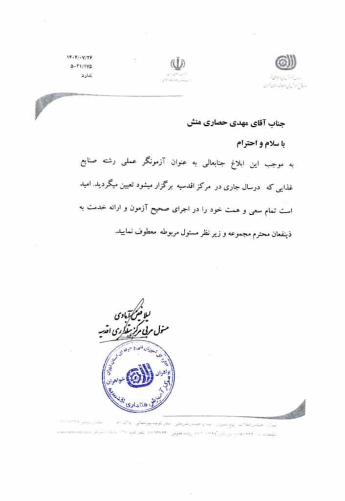 تاییدیه آزمونگری و داوری صنایع غذایی