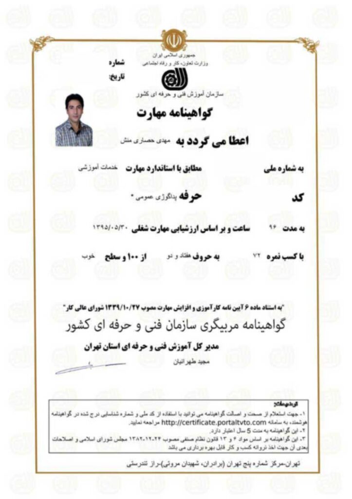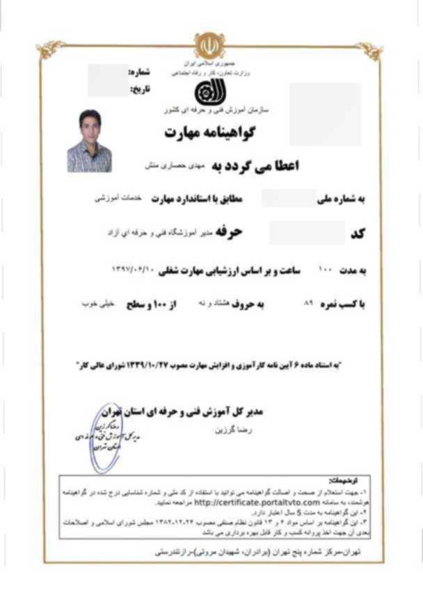 مدارک سازمان فنی و حرفه‌ای (با قابلیت ترجمه و تأیید بین‌المللی)